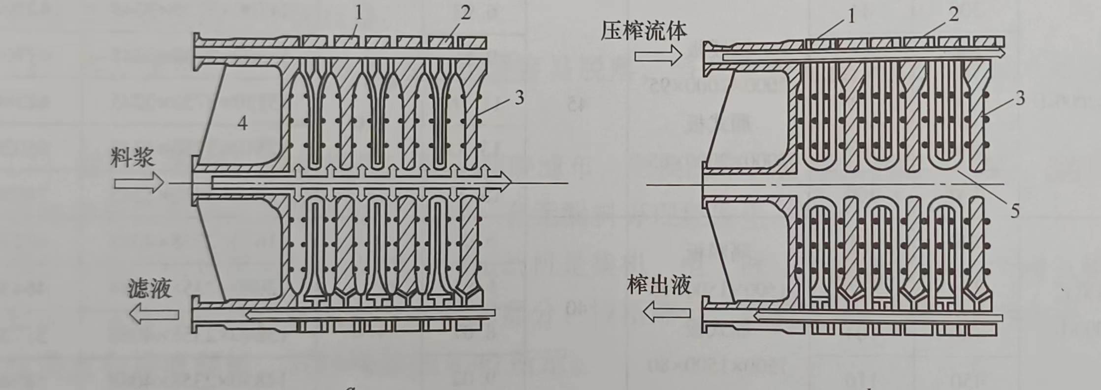 全聚丙烯滤板具有安装在不锈钢框上的隔膜,框上装有滤布辗,料浆加入管位于滤板之间,然后滤板被密闭,向滤室两面的滤布上加入料浆,结果,滤饼只与过滤介质接触,滤饼夹在两层滤布之间.
