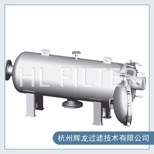 卧式大流量过滤器外壳进出口与过滤系统管路相连,连接时要遵循高进低出的原则,确保滤芯外侧进水、内侧出水