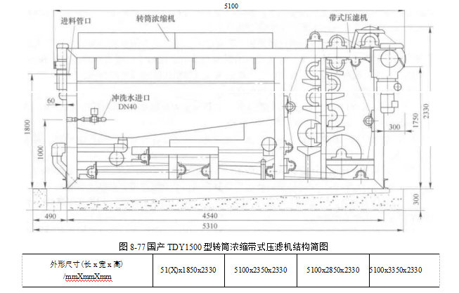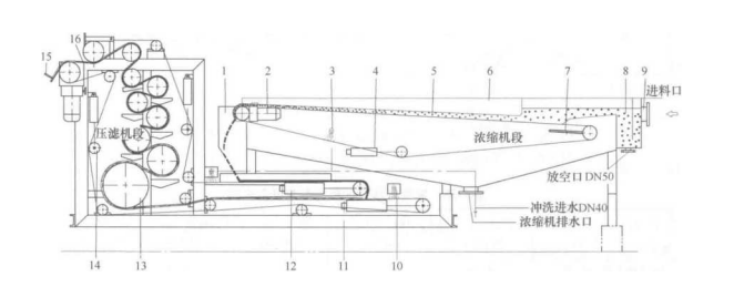 浓缩脱水一体机的结构形式一般按浓缩形式来划分,主要有带式浓缩/带式脱水,转鼓转筛浓缩/带式脱水,螺旋预浓缩/带式脱水和离心浓缩/带式脱水4种.