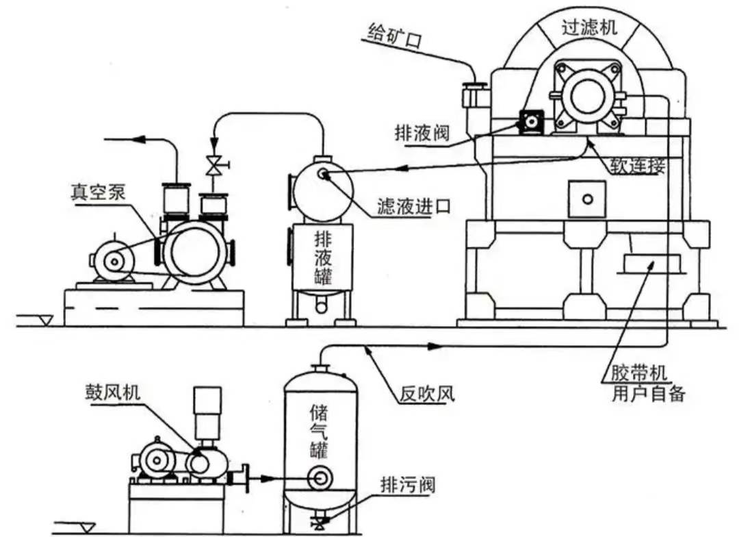 带在转鼓的带动下一起循环转动,因而在转动过程中,有时和转鼓接触,有时则离开转鼓面.滤带由卸料辊及导向辊支承,并设有防止滤布跑偏的装置.