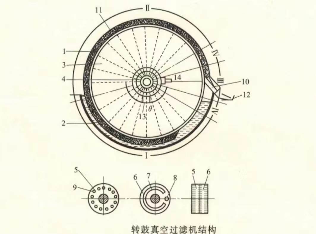 内滤面转鼓真空过滤机,转鼓如离心甩干的筒体,其过滤面在转鼓内侧,主要部件包括水平放置的转鼓,主轴,分配头,机座,驱动装置,转鼓拖轮等.转鼓的内表面圆周面,根据转鼓直径大小镶有不同数量的若干块长方形的筛板,在筛板上铺有滤布...