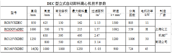 DEC型立式自动卸料离心机技术参数见表10-13。
