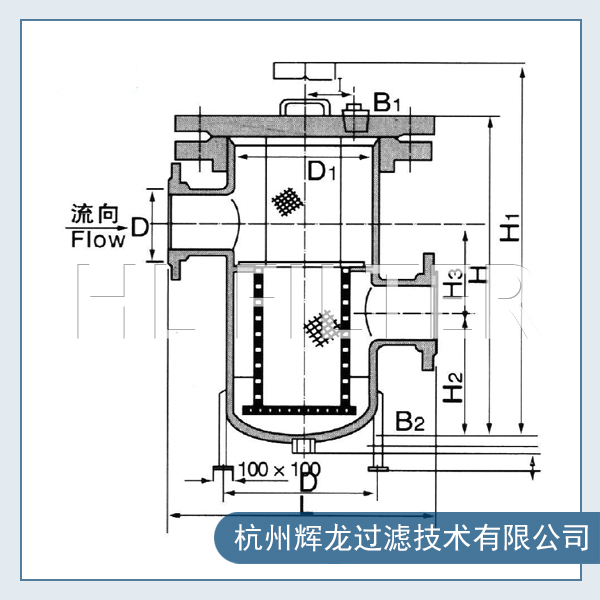 篮式过滤器Basket type filter),主要由接管、主管、滤篮、法兰法兰盖及紧固件等组成。当液体通过主管进入滤篮后,固体杂质颗粒被阻挡在滤篮内,而洁净的流体通过滤篮、由过滤器出口排出。当需要清洗时,旋开主管底部螺塞,排净流体,拆卸法兰盖,清洗后重新装入即可。因此,使用维护极为方便。