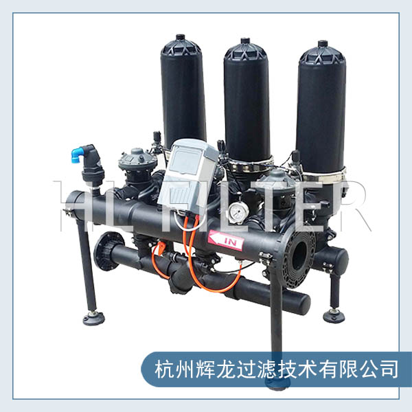 盘式过滤器又称为叠片过滤器或叠片式过滤器,他是由过滤单元并列组合而成,其过滤单元主要是由一组带沟槽或棱的环状增强塑料滤盘构成,上下两层盘片中间沟槽起到过滤拦截的作用。过滤时污水从外侧进入,盘片在单元内为紧密压实叠加在一起,相邻滤盘上的沟槽棱边形成的轮缘把水中固体物截留下来;反冲洗时水自环状滤盘内部流向外侧,将截留在滤盘上的污物冲洗下来,经排污口排出。