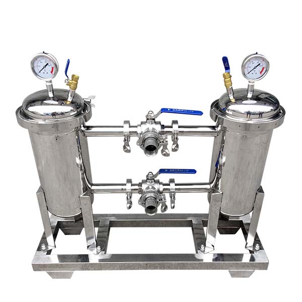 并联袋式过滤器是由两台袋式过滤器用管道按并联结构进行组合,顶部装有压力表、排气阀,管道接头采用胀合连接,经1.0MPa水压试验,三通外螺纹旋塞启闭灵活,该设备结构紧凑,操...