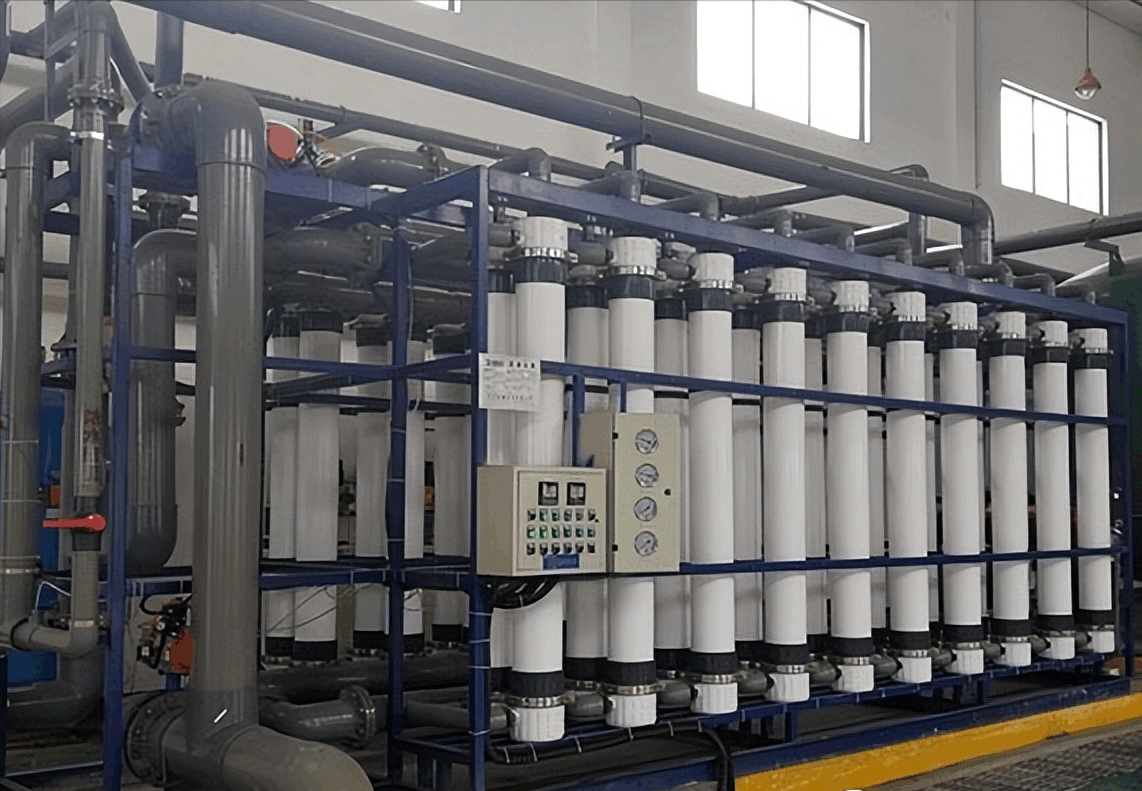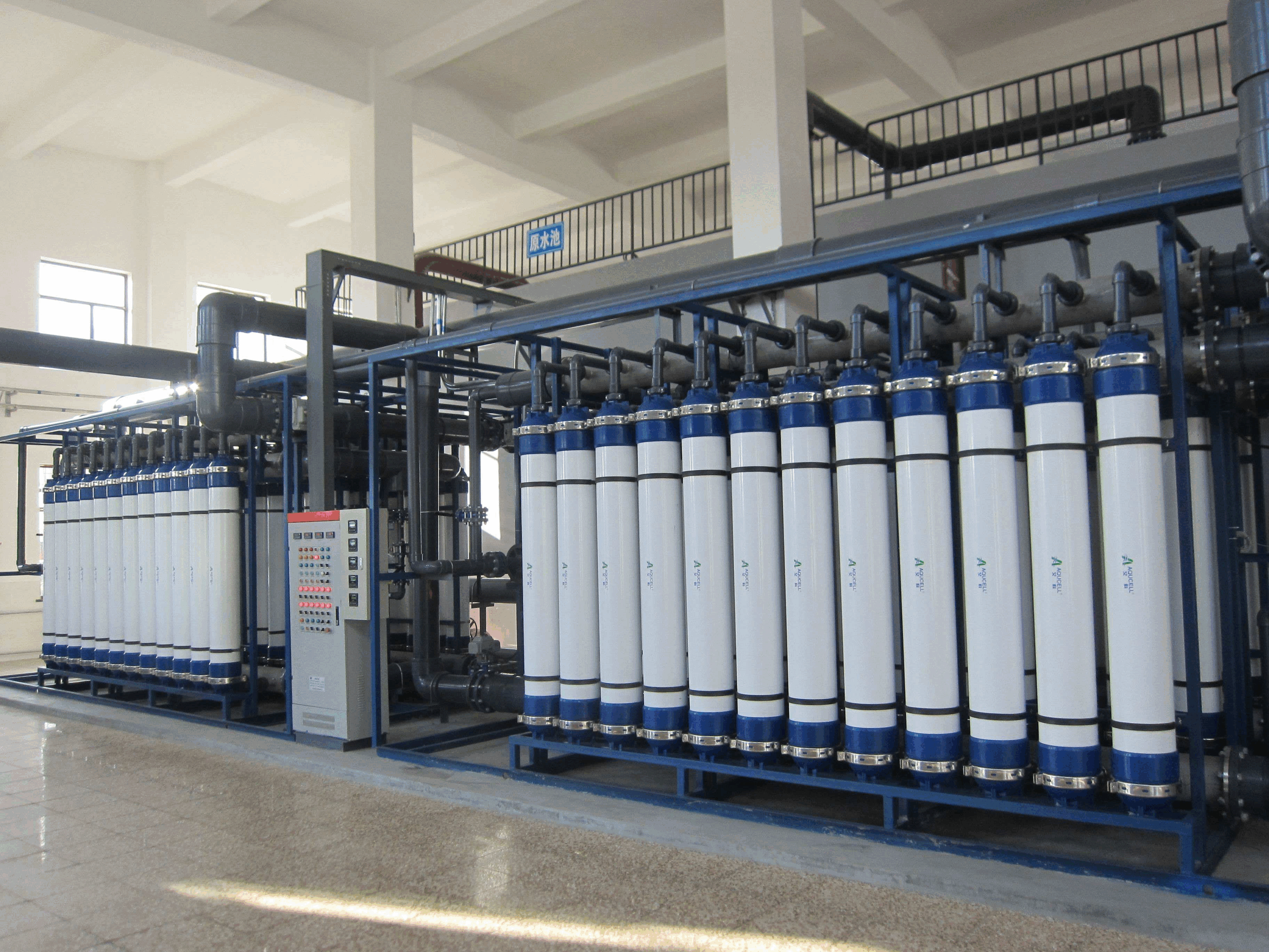超滤是一种以筛分为分离原理,以压力为推动力的膜分离过程,过滤精度在0.005-0.01μm范围内, 可有效去除水中的微粒、胶体、细菌、热源及高分子有机物质