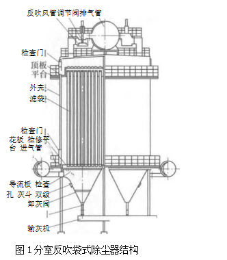 分室反吹袋式除尘器主要由箱体,滤袋,灰斗,反吹风切换阀门和管道以及进气和排气管道组成.