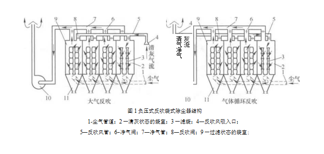 负压分室反吹袋式除尘器的切换阀门位于袋室的岀口处正压分室反吹袋式除尘器袋式除尘器的袋室不需严密的围挡结构,各袋室之间也不设隔板.
