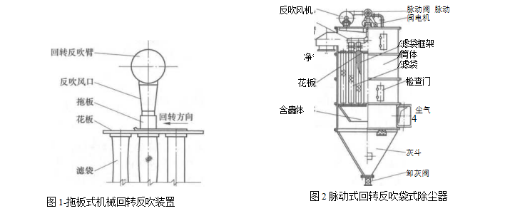 拖板式机械回转反吹装置可以克服反吹过程中清灰气体从花板上流失的缺点脉动式机械回转反吹是在反吹风管上增设脉动阀,使反吹风机产生的清灰气流产生脉动.
