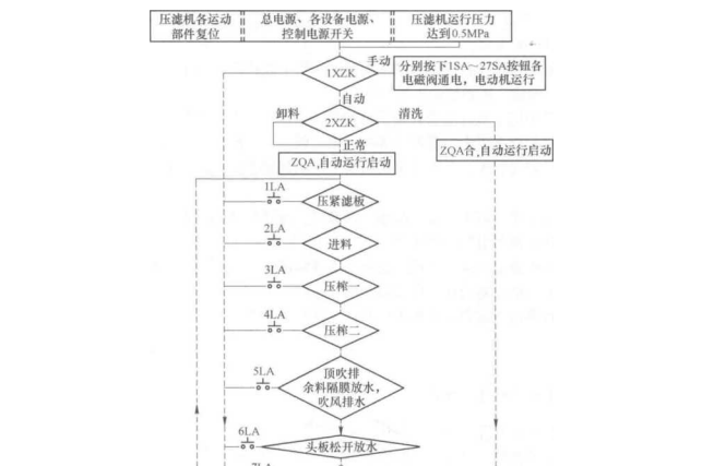 自动和手动操作过程中严禁乱动控制箱盘上按钮开关和压滤机上行程开关,否 则程序打乱,造成漏液,重者造成机器损坏.