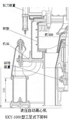 上悬式离心机是转鼓主轴上端悬挂在支架横梁上的一种过滤离心机,其卸料方式又分 为重力卸料和机械刮刀卸料两种,均为下部卸料.