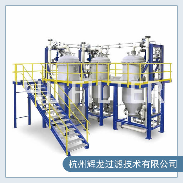 过滤机无需滤饼过滤,对细粘的料液,使得过滤速度一直处于很高的起始通量状态在过滤过程中,一组过滤,一组反吹模式中,过滤机内反吹下来的液渣快速进入过滤机的圆锥底部,并在底部排出。